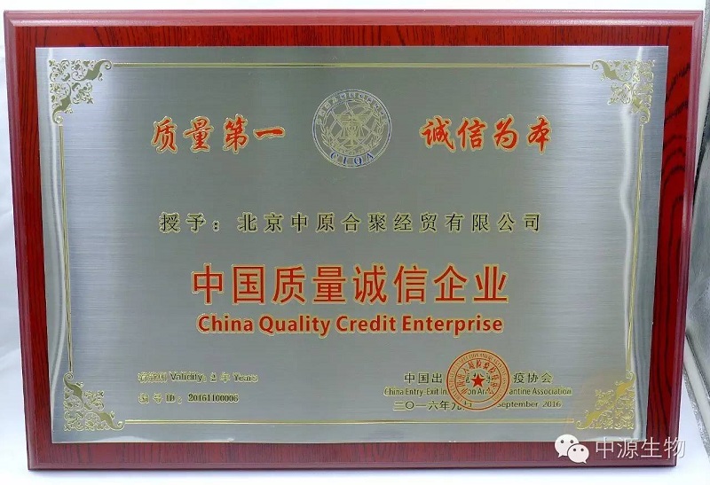 北京中原公司被中國出入境檢驗檢疫協(xié)會(huì )授予中國質(zhì)量誠信企業(yè)。16-11-07