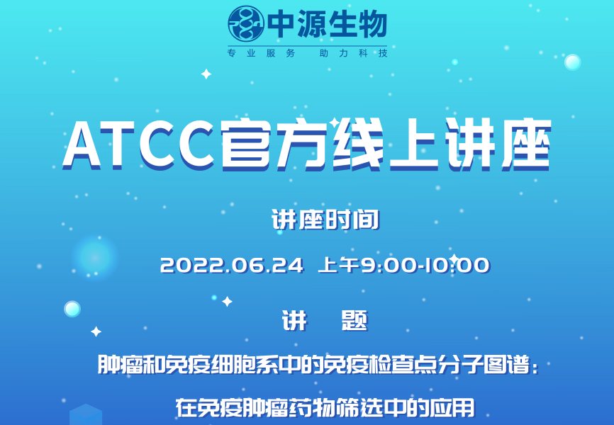 ATCC網(wǎng)絡(luò )研討會(huì )來(lái)啦!尊敬的ATCC用戶(hù):您好!我們誠摯的邀請您參加由美國ATCC官方和北京中源生物聯(lián)合舉辦的有關(guān)"腫瘤和免疫細胞系中的免疫檢查點(diǎn)分子圖譜:在免疫腫瘤藥物篩選中的應用"網(wǎng)絡(luò )研討會(huì )。22-06-24