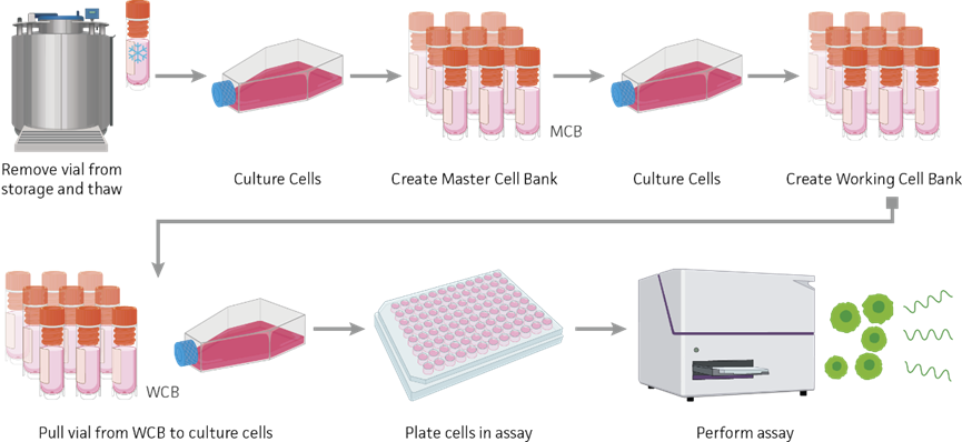 傳統細胞實(shí)驗中,由于需要細胞培養過(guò)程以獲得一定數量和同步化的細胞儲備液,因此基于該流程的細胞檢測時(shí)間很長(cháng),一般為數周。為了加快您的時(shí)間表,同時(shí)為您提供所需的一致性,ATCC 開(kāi)發(fā)了新的即用型細胞(Assay Ready Cells)。24-11-22