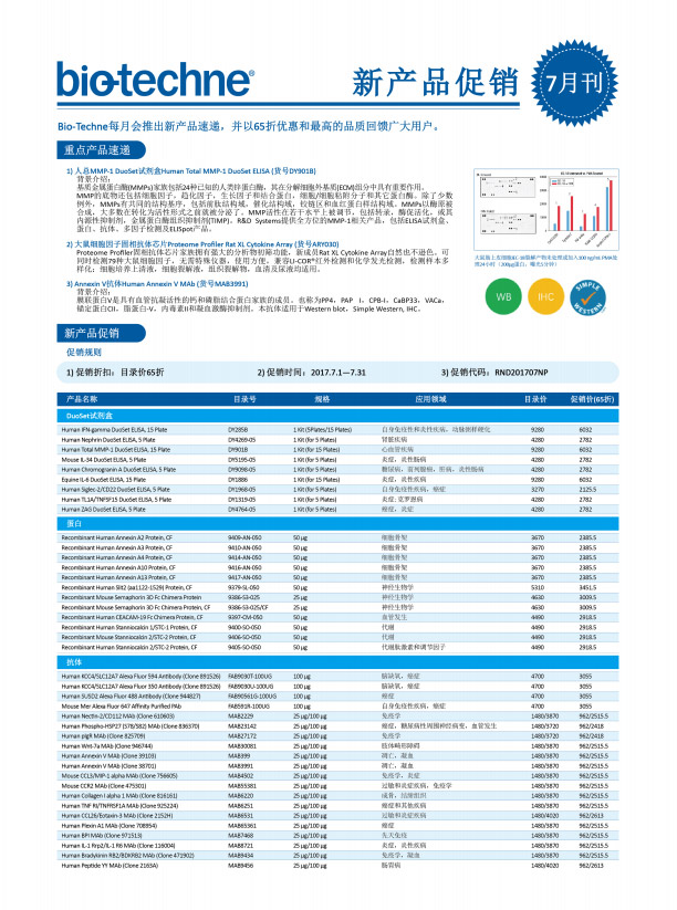 Novus蛋白夏季五折促銷(xiāo)。Novus Biologicals憑借其超過(guò) 20 萬(wàn)種抗體及 3 萬(wàn)個(gè)蛋白及多肽產(chǎn)品,為客戶(hù)提供著(zhù)生命研究領(lǐng)域的一站式服...17-09-05