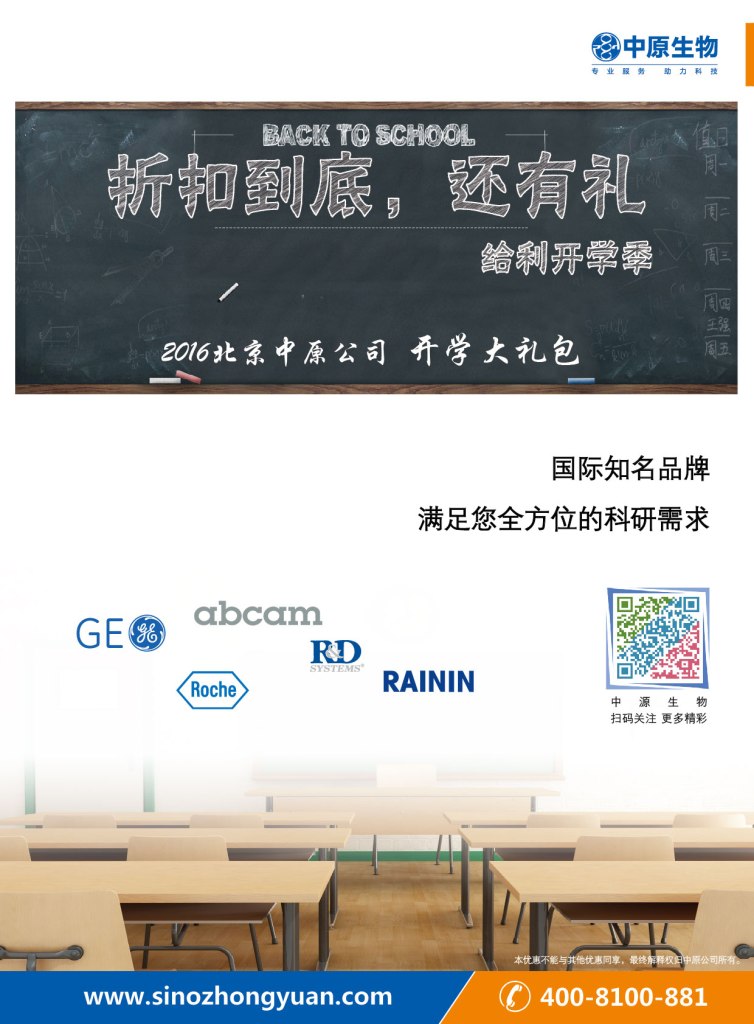 2016中原生物開(kāi)學(xué)大禮包來(lái)啦!GE,Roche,abcam,R&D,Rainin等國際知名品牌,滿(mǎn)足您全方位的科研需求!折扣到底,還有禮!給利開(kāi)學(xué)季...16-09-18