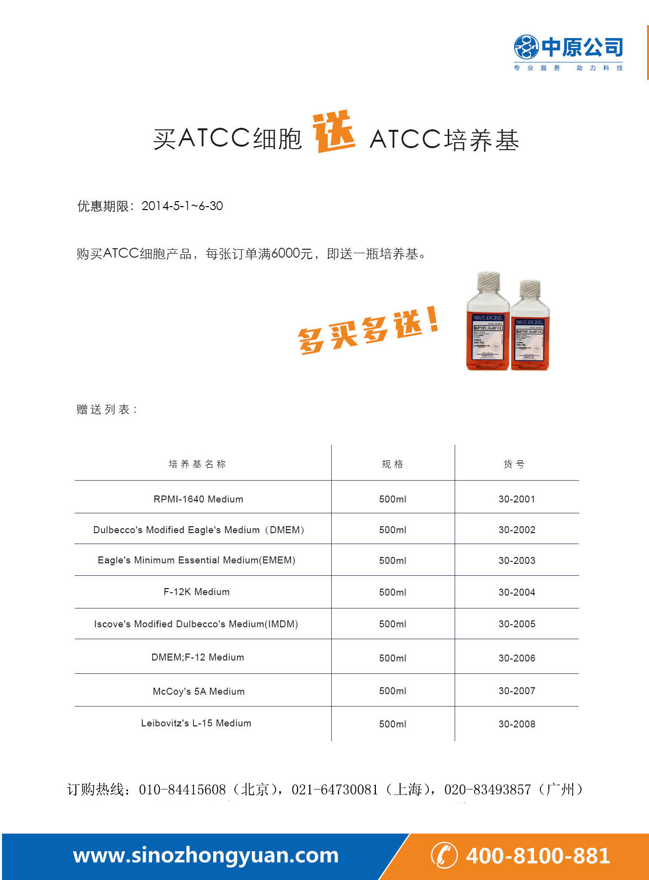 買(mǎi)ATCC細胞 送ATCC培養基!14-04-30