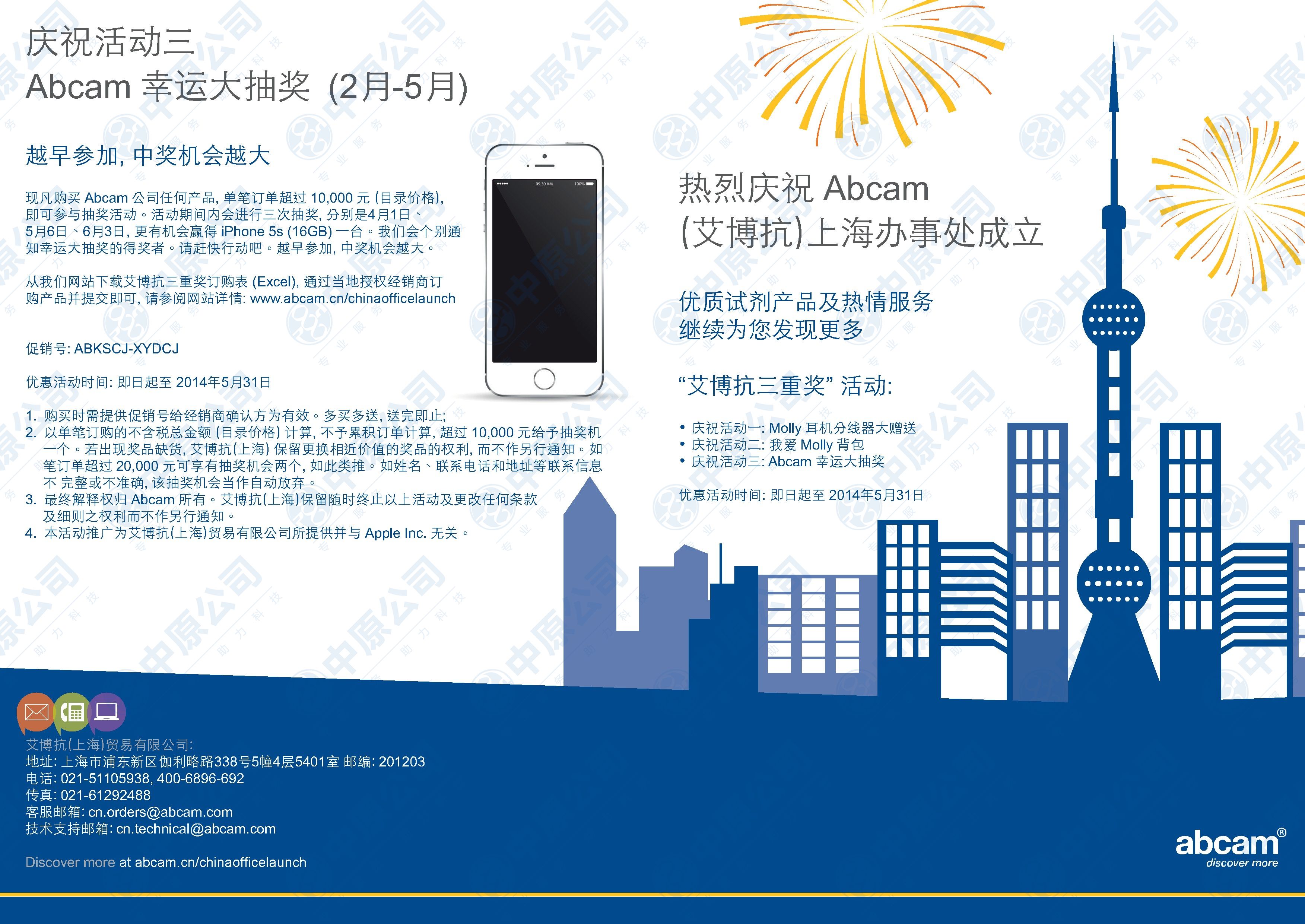 慶祝Abcam上海辦成立 幸運大抽獎!14-02-26