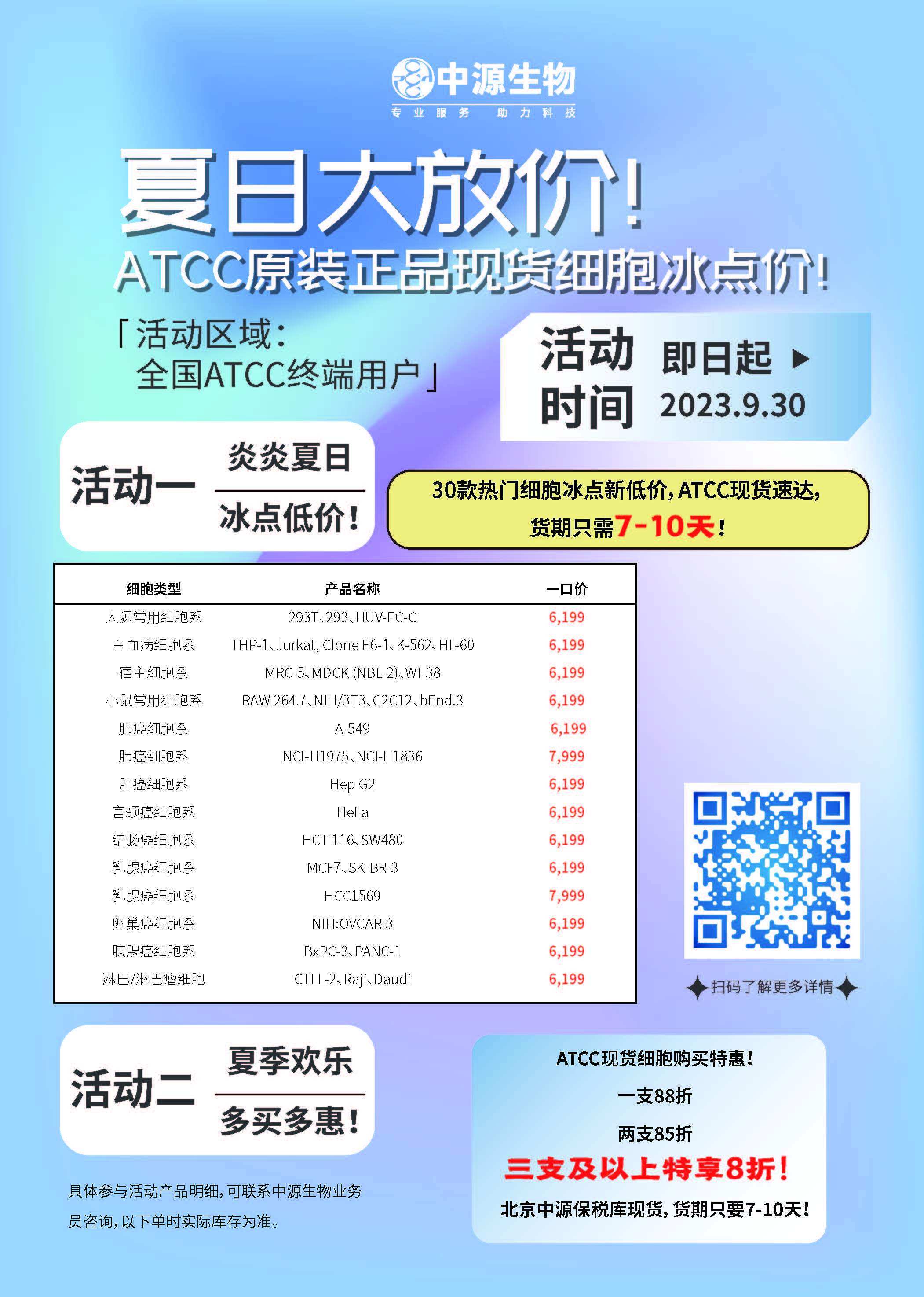 ATCC原裝正品現貨細胞冰點(diǎn)價(jià) 即日起~2023.9.30 全國ATCC終端用戶(hù)23-08-04