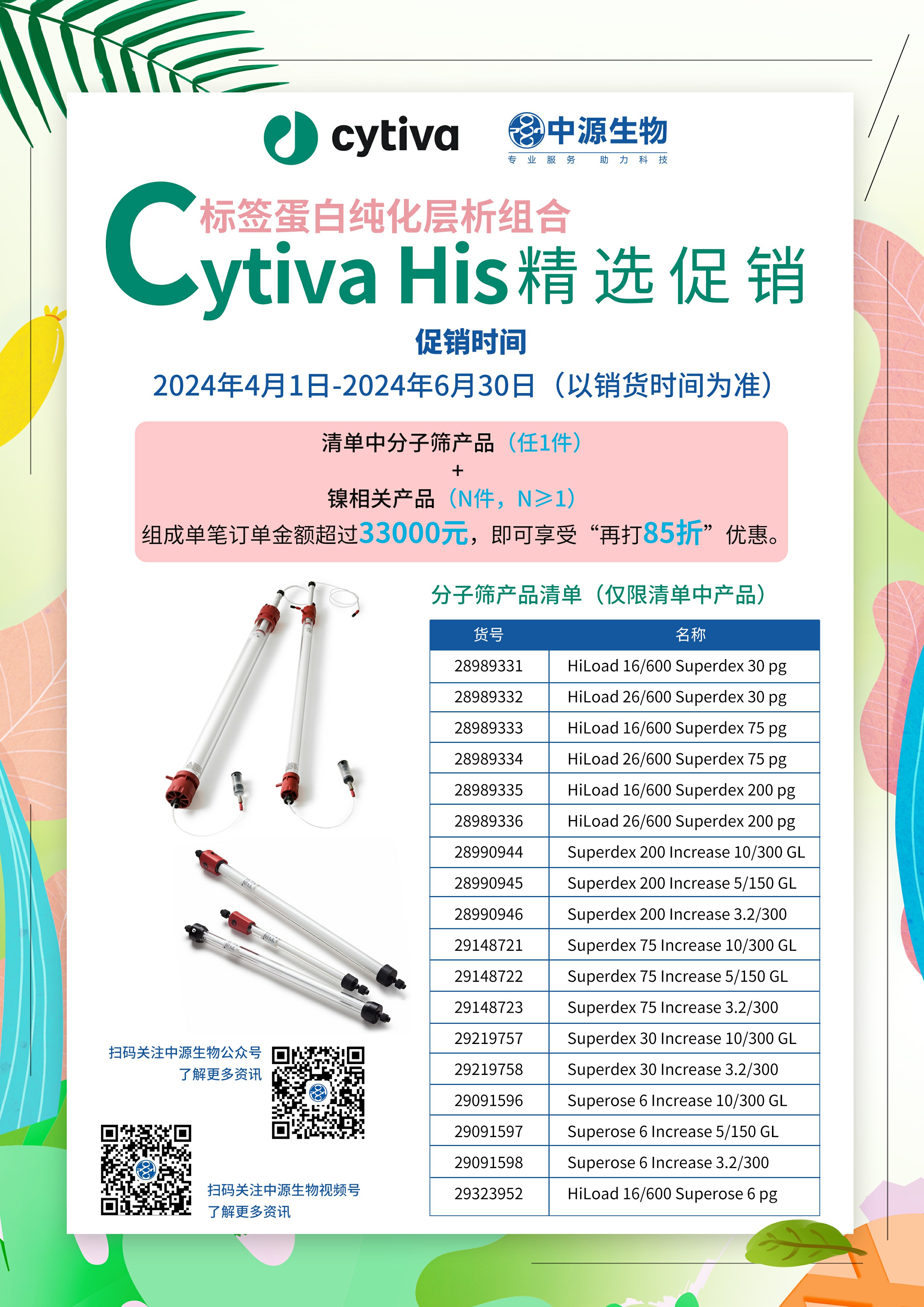 Cytiva分子篩搭配鎳柱及鎳填料大放送購買(mǎi)分子篩產(chǎn)品清單中1件 鎳相關(guān)產(chǎn)品清單中任意產(chǎn)品 組成his標簽蛋白純化組合 單筆訂單金額大于3300...24-04-01