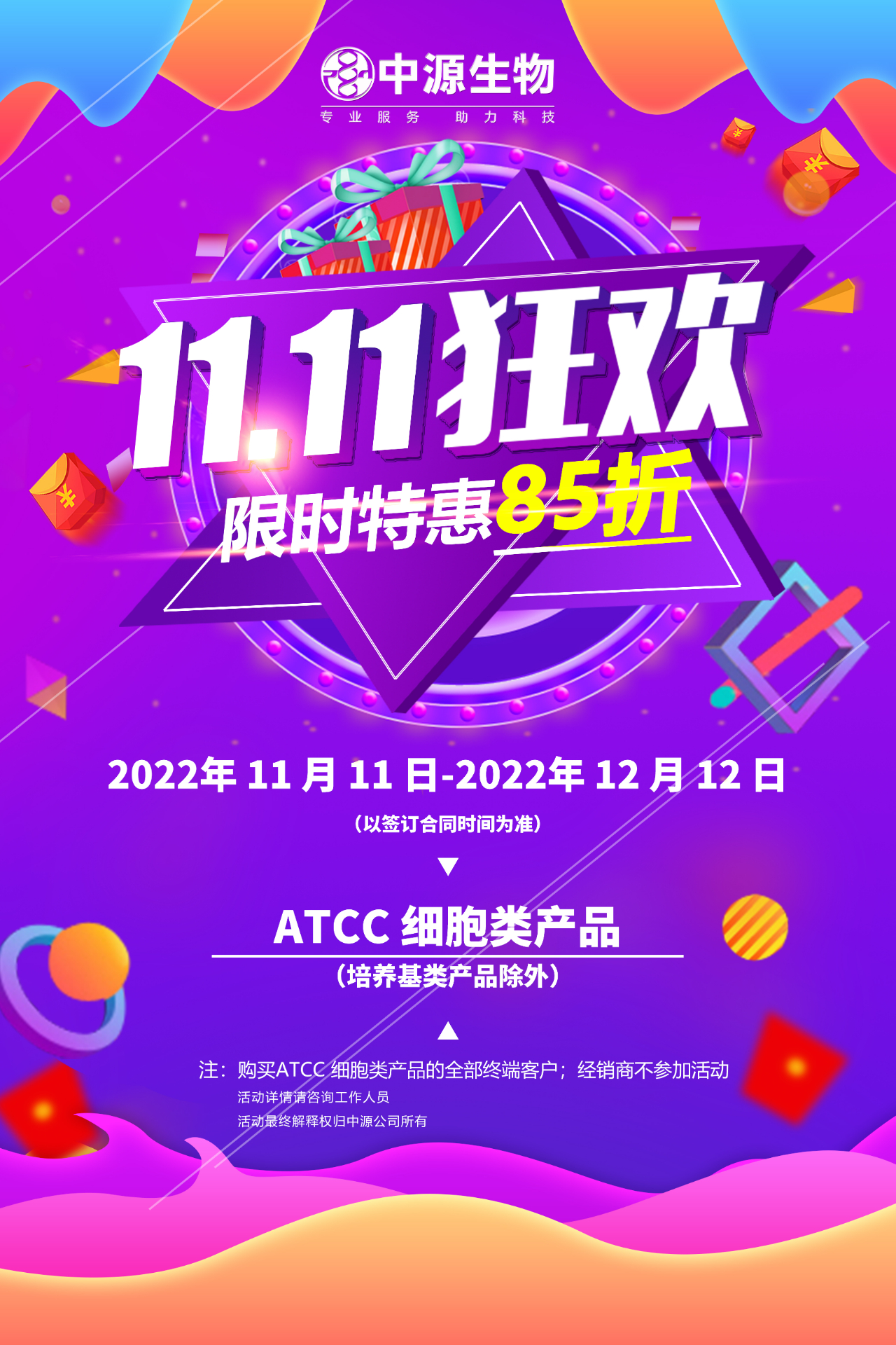 雙11來(lái)啦 ATCC 細胞類(lèi)產(chǎn)品限時(shí)特惠85折 22-11-11