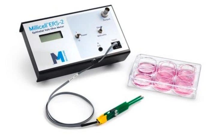 Millicell® ERS-2(電阻系統)能夠可靠地測量培養基中上皮細胞的膜電位和電阻。該裝置用來(lái)定性測量細胞單層的健康和定量測量細胞融合。每個(gè)電極尖上的銀/氯化銀(Ag/AgCl)小球用來(lái)測量電壓。由于電極尺寸很小,因此您可以容易地測量微孔膜上生長(cháng)的細胞的跨膜電壓和電阻。