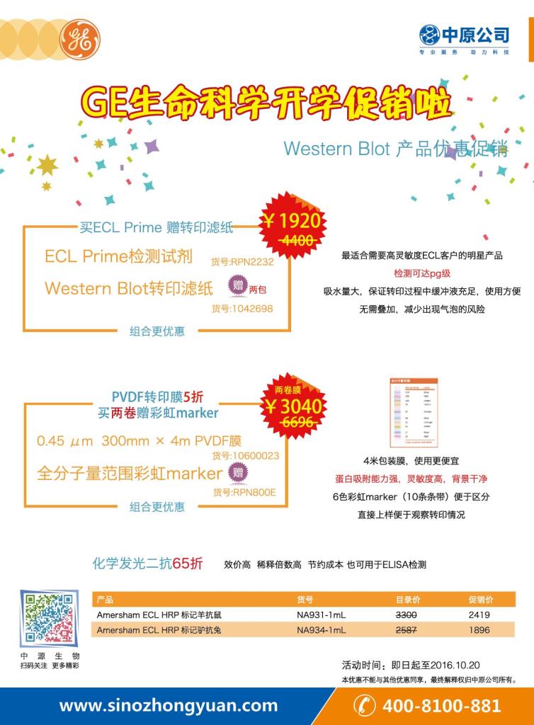 開(kāi)學(xué)季,GE公司為大家提供了三類(lèi)產(chǎn)品優(yōu)惠。 Western Blot系列產(chǎn)品促銷(xiāo)