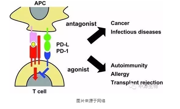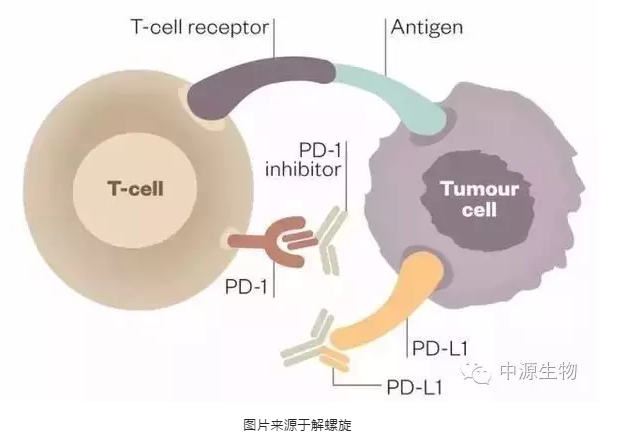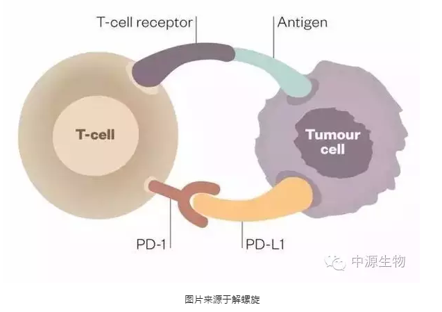 腫瘤細胞逃避T細胞摧毀的一種途徑是通過(guò)在它表面產(chǎn)生PD-L1,當免疫細胞T細胞表面的PD-1識別PD-L1后,可以傳導抑制行信號,T細胞就不能發(fā)現腫瘤細胞和向腫瘤細胞發(fā)出攻擊信號。