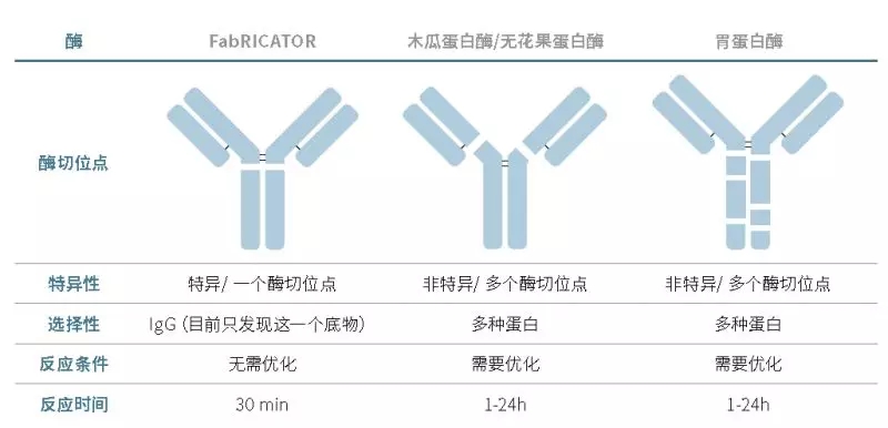 FabRICATOR蛋白酶有更高的特異性和IgG選擇性,反應條件簡(jiǎn)單可兼容多種不同pH值的緩沖液,并且能明顯縮短反應時(shí)長(cháng)。