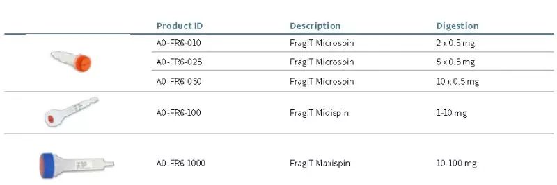 以瓊脂糖為基架,提供了預填充固定化的FabRICATOR的柱子,可在柱內直接酶切,酶切產(chǎn)物可用用離心的方法收集。