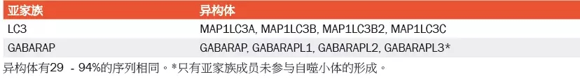 在哺乳動(dòng)物中,已經(jīng)發(fā)現了多個(gè)LC3家族成員,它們屬于兩個(gè)主要亞家族,LC3和GABARAP。不同的異構體在選擇性自噬中可發(fā)揮特殊的作用。