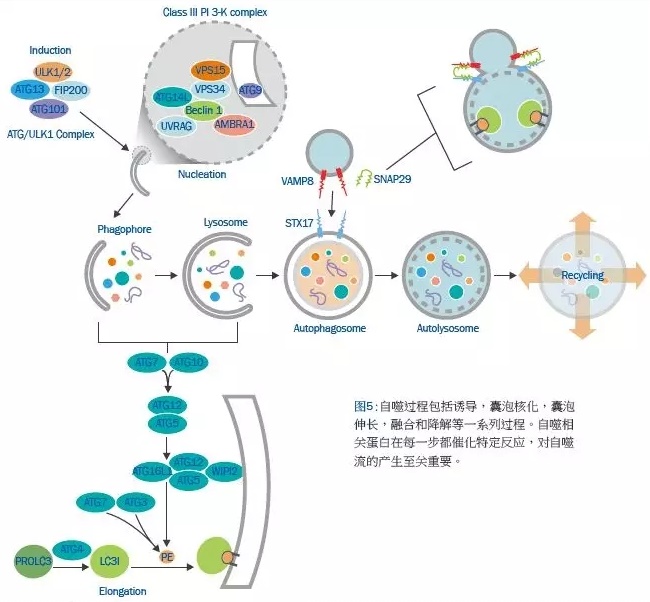 自噬過(guò)程包括誘導,囊泡核化,囊泡伸長(cháng),融合和降解等一系列過(guò)程。自噬相關(guān)蛋白在每一步都催化特定反應,對自噬流的產(chǎn)生至關(guān)重要