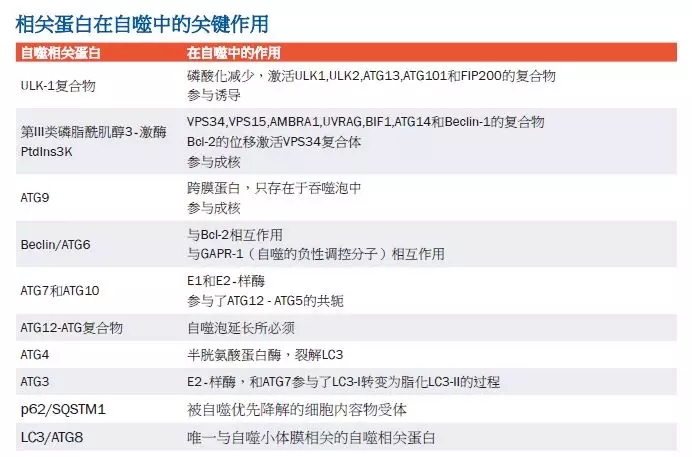 在酵母中,自噬過(guò)程共有31種自噬相關(guān)蛋白(ATG)的參與調節,許多自噬相關(guān)蛋白在哺乳動(dòng)物中都是保守的。每個(gè)自噬相關(guān)蛋白都在自噬的動(dòng)態(tài)過(guò)程中發(fā)揮著(zhù)特定的作用。