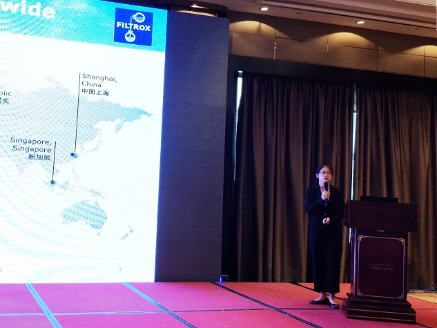 Filtrox公司,營(yíng)銷(xiāo)總監何群,帶來(lái)的是“高密度培養液/發(fā)酵液的澄清過(guò)濾方案”
