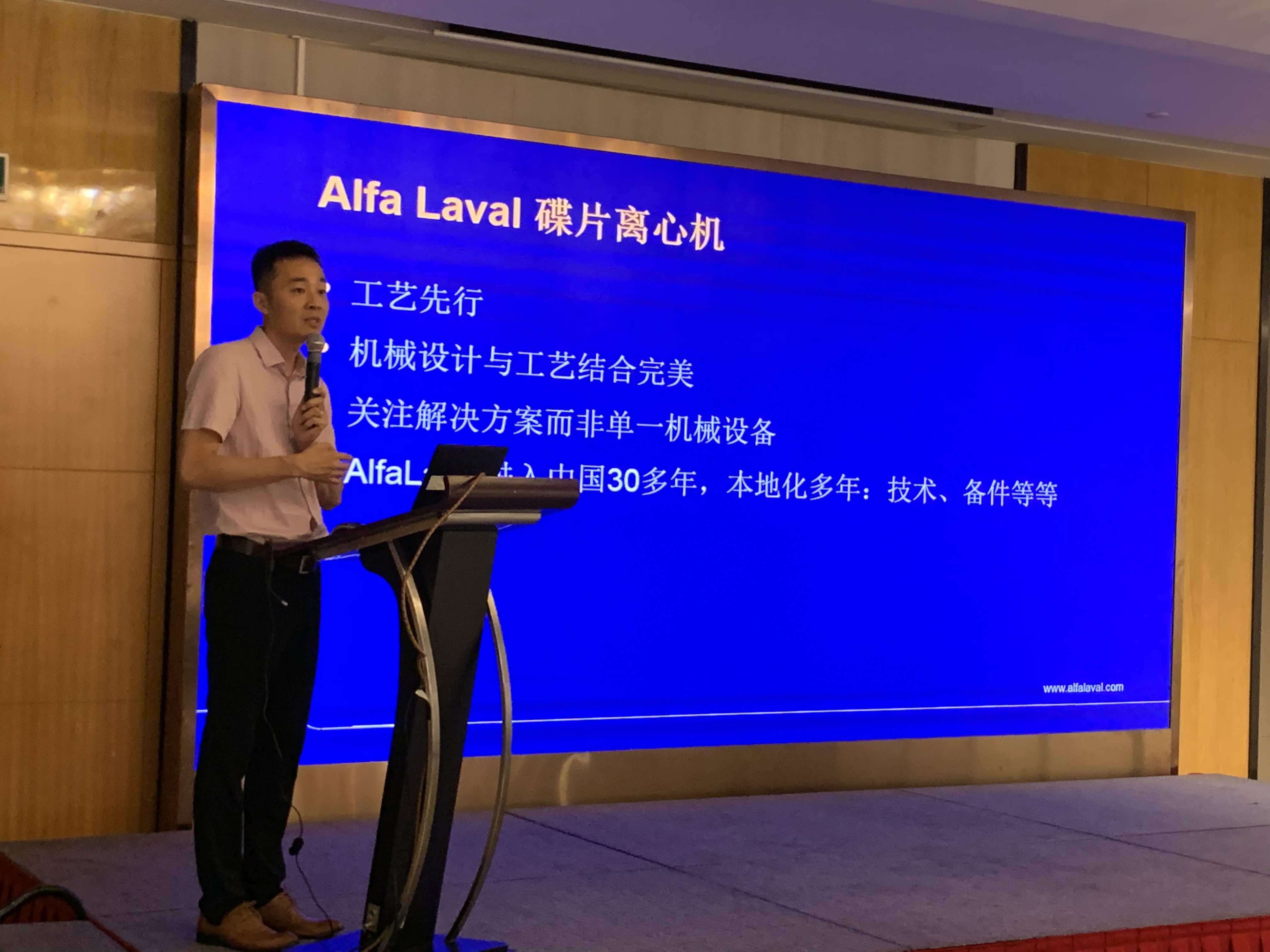 Alfa Laval應用產(chǎn)品專(zhuān)家朱閃老師對“碟式離心機在生物制藥行業(yè)的應用”進(jìn)行主題演講