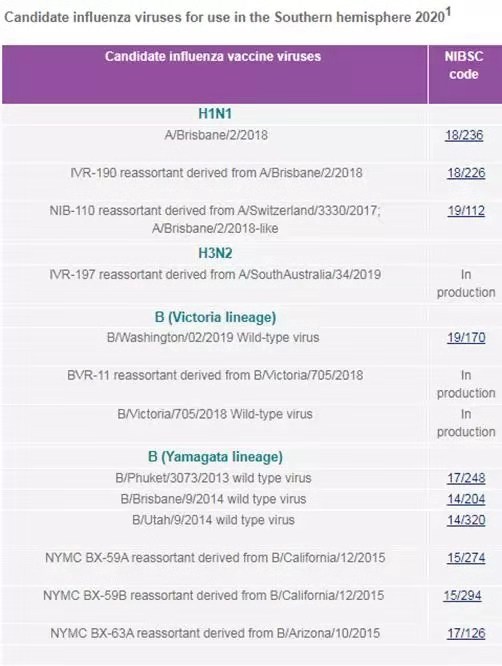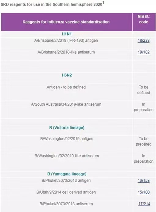 近日NIBSC剛剛更新了南半球2020年候選流感病毒和相關(guān)抗原抗血清標準品: