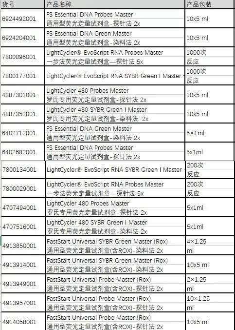 當然如果您的儀器需要進(jìn)行ROX校正,才能得到準確的熒光結果,羅氏也能提供另外一系列試劑:FUMM預混液(含ROX校正染料)。