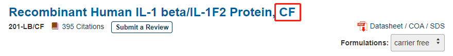 CF,是 Carrier Free 的意思。一般來(lái)說(shuō),為了對重組蛋白的結構及活性進(jìn)行保護,我們會(huì )在蛋白產(chǎn)品中添加牛血清白蛋白(BSA)作為載體蛋白。但考慮到 BSA 會(huì )對某些實(shí)驗造成影響,我們又研發(fā)出不含載體蛋白(BSA)的產(chǎn)品,即 Carrier Free 蛋白。