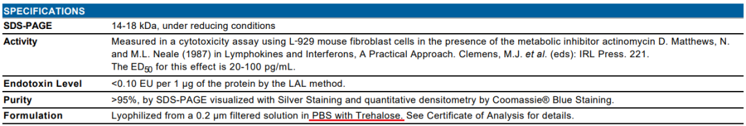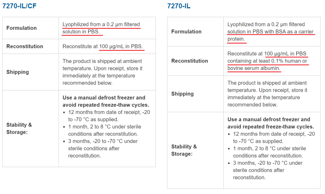 注:并不是所有不標注 CF 的蛋白產(chǎn)品都含有 BSA,產(chǎn)品的具體成分需要參考產(chǎn)品說(shuō)明書(shū)或 COA。