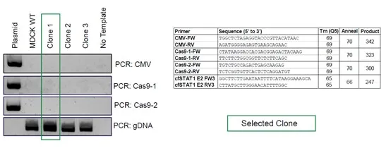 圖3. STAT1-KO-MDCK 細胞無(wú) Cas9/CMV 基因序列的整合。