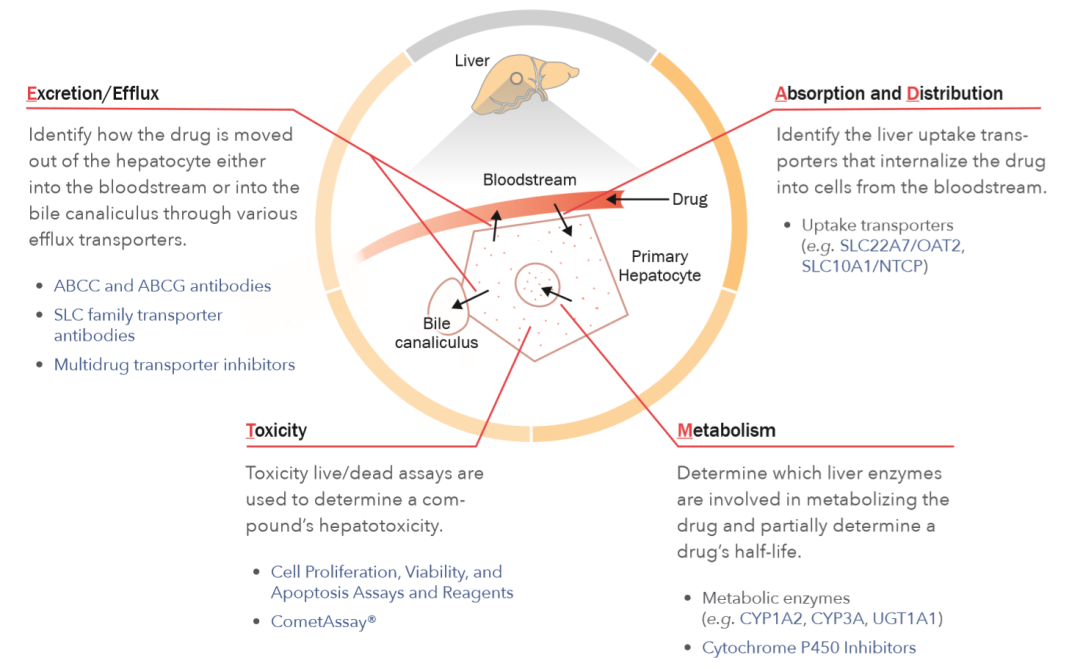 圖 1 在原代肝細胞中進(jìn)行藥物/化合物的吸收、分配、代謝、排除以及毒性(ADME/TOX)的研究,對于評估藥物安全及藥代動(dòng)力學(xué)至關(guān)重要。