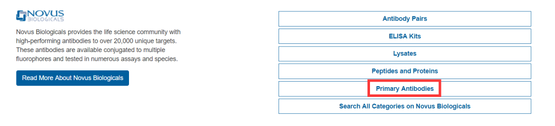 這里以 Novus Biologicals® 品牌產(chǎn)品為例,點(diǎn)擊「Primary Antibodies」