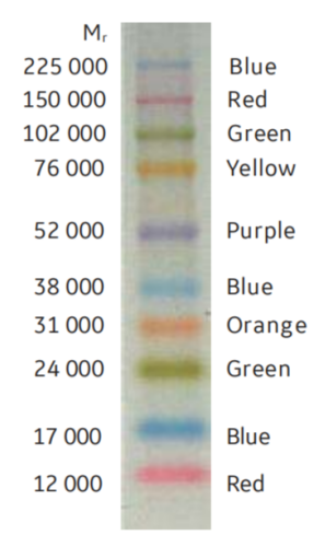 彩虹 marker 可通過(guò) SDS-PAGE 快速、簡(jiǎn)單地識別蛋白質(zhì)。RPN800E 提供銳利、 強烈的帶數和離散的帶間距, 從而能夠準確地確定分子量。