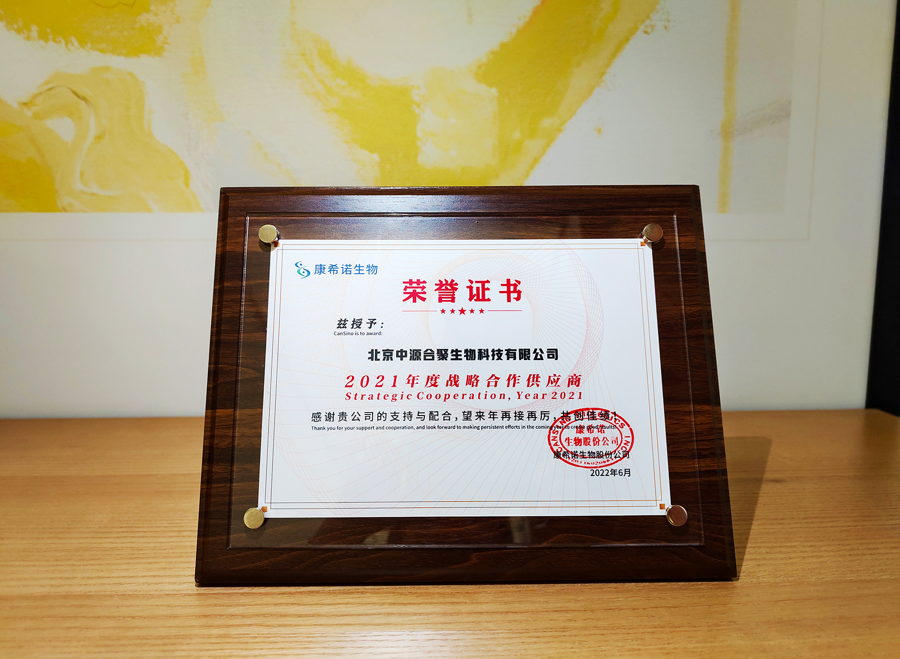榮獲 康希諾生物 2021年度戰略合作供應商