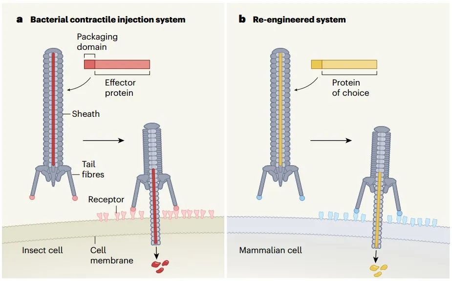 重新設計細菌的胞外可收縮注射系統,將其改造為專(zhuān)門(mén)靶向特定人類(lèi)細胞遞送所需蛋白質(zhì)的裝置