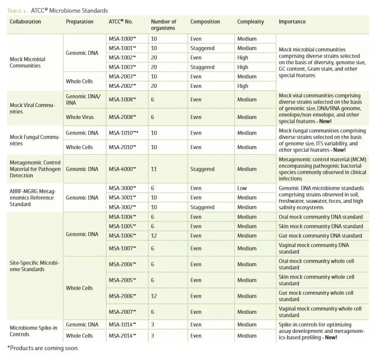 當然還有真菌微生物組和病毒組標準品等,分為菌毒株和DNA形式。產(chǎn)品經(jīng)過(guò)測序確保純度,無(wú)人源核酸。由于A(yíng)TCC的微生物組標準品已知組成成分,可以用于優(yōu)化分析從樣品收集到數據分析的每個(gè)工作流程,如提高實(shí)驗數據穩定性,消除偏差,增加實(shí)驗可信度,尤其是在特定部位菌群分析和臨床微生物研究中。