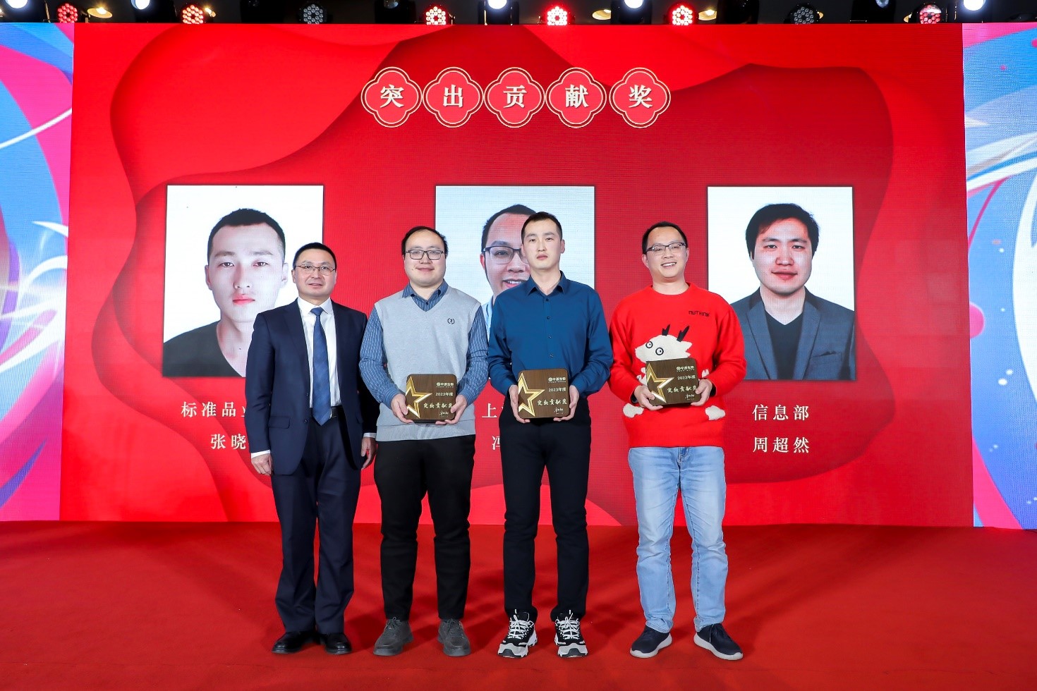 大會(huì )頒發(fā)的第五個(gè)獎項是突出貢獻獎,對平臺體系、經(jīng)銷(xiāo)體系、職能體系在2023年度做出卓越貢獻的同事進(jìn)行表彰,本獎項由經(jīng)銷(xiāo)體系副總裁李景華為獲獎?wù)邚垥陨?、馮明、周超然頒獎。
