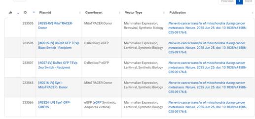 文章中用于構建MitoTRACER系統的所有質(zhì)粒都已寄存到Addgene質(zhì)粒庫中,屬于Simon Grelet實(shí)驗室,?? 獲取鏈接:https://www.addgene.org/browse/article/28252797/。