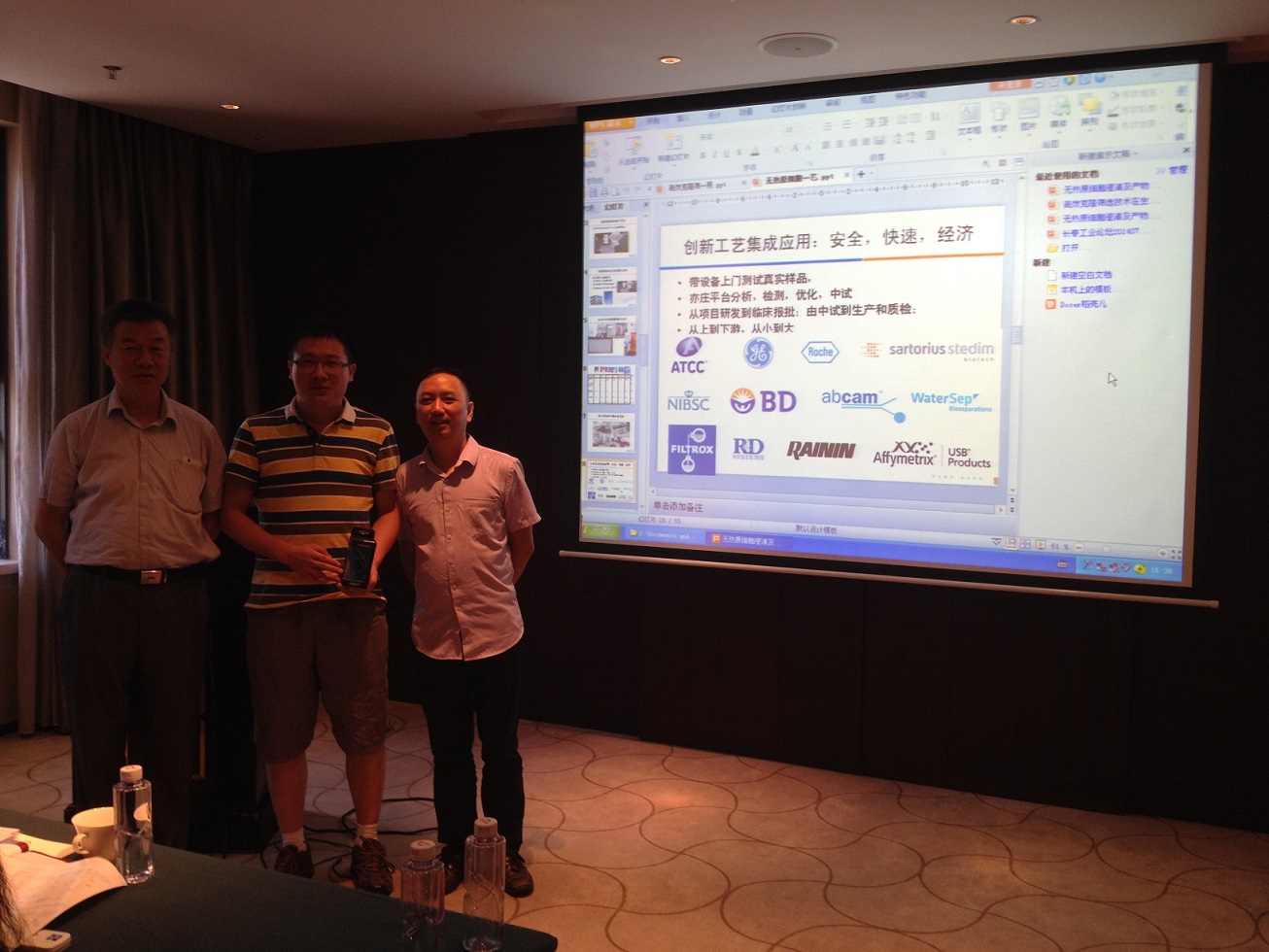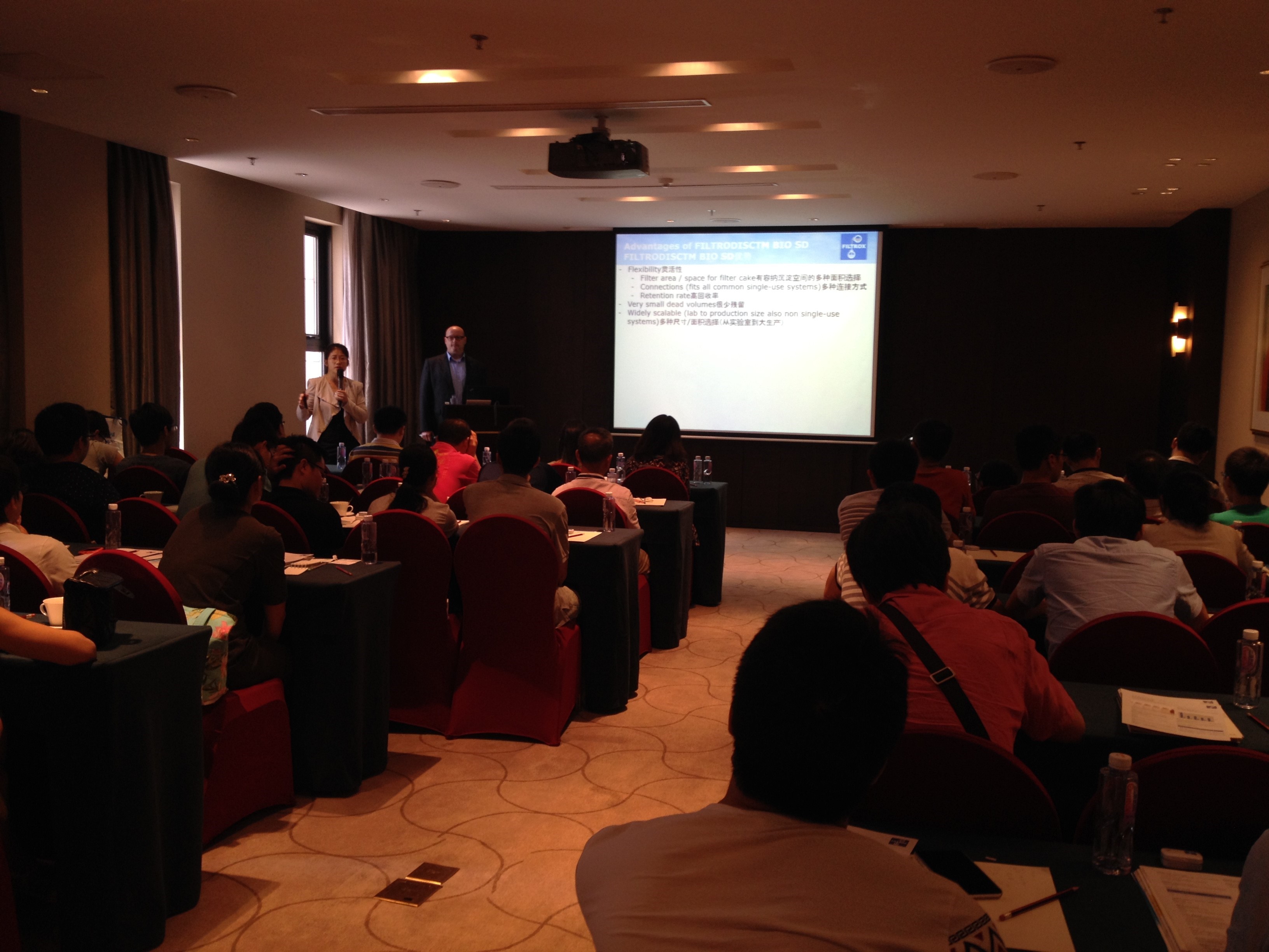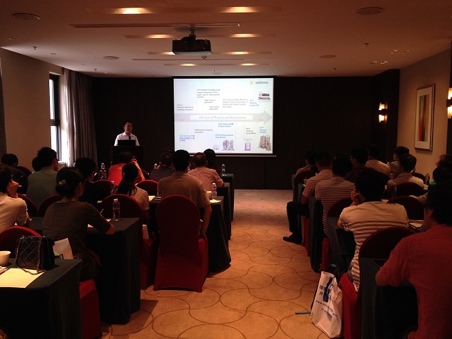 其中,BD生物科學(xué)部的產(chǎn)品經(jīng)理吳建勇就目前細菌及細胞培養過(guò)程中如何更好選擇培養基、添加物、更優(yōu)開(kāi)發(fā)高產(chǎn)藥物做了精彩的演講,尤其重點(diǎn)講到高級生物工藝中所用的培養基和添加物已經(jīng)成為許多藥物尤其是單克隆抗體生產(chǎn)過(guò)程中的一種關(guān)鍵組成部分,會(huì )場(chǎng)討論氣氛十分熱烈。另外,梅特勒-托利多公司的耿顯華對移液器良好操作規范(簡(jiǎn)稱(chēng)GPP)技巧做了詳細的介紹和總結,客戶(hù)參與度高,提問(wèn)環(huán)節客戶(hù)踴躍回答問(wèn)題??蛻?hù)對這一看起來(lái)簡(jiǎn)單的技術(shù)有了新的理解和認識。深刻認識了梅特勒-托利,認識了RAININ移液器,在茶歇期間也紛紛來(lái)現場(chǎng)使用產(chǎn)品,提出了很多疑問(wèn)。應用中空纖維watersep在無(wú)熱原細胞澄清產(chǎn)品濃縮工藝環(huán)節進(jìn)行討論時(shí),會(huì )議現場(chǎng)一度處于討論的熱潮之中,參會(huì )嘉賓與演講嘉賓首席科學(xué)家朱希燦結合自身多年的實(shí)踐經(jīng)驗一同向參會(huì )者展示watersep細胞截留裝置,此演示更是吸引了參會(huì )者濃厚的興趣與咨詢(xún)。研討會(huì )在熱烈的掌聲中完美落下帷幕!