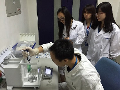 在比賽現場(chǎng),為了讓更多的老師和同學(xué)有機會(huì )參加比賽,今年準備了兩臺天平,而且是將移液器操作指導的專(zhuān)題培訓和達人賽同時(shí)進(jìn)行。博奧公司新入職的一些員工參加了Rainin工程師杜紅主講的關(guān)于如何正確的使用移液器的專(zhuān)題培訓,現場(chǎng)演示并糾正了移液操作過(guò)程中的一些錯誤動(dòng)作,到場(chǎng)的老師都表示非常的滿(mǎn)意,為精準移液操作打下了實(shí)踐基礎。