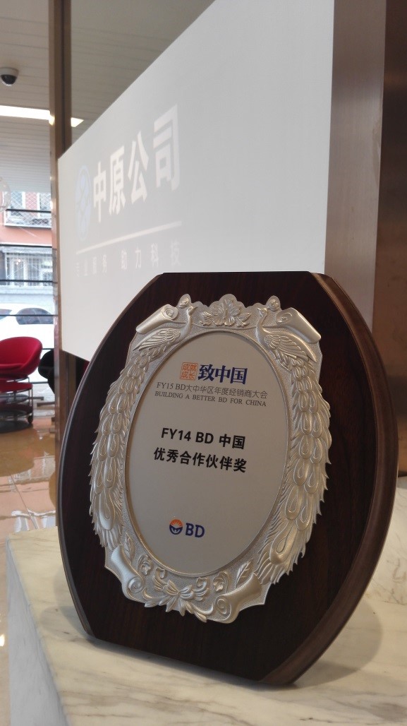中原公司喜獲美國B(niǎo)D公司FY14中國優(yōu)秀合作伙伴獎