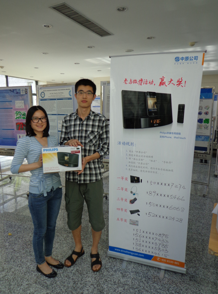 中原公司作為此次大會(huì )的主贊助商并設展。在現場(chǎng),我們通過(guò)微博(@中原公司)進(jìn)行了抽獎活動(dòng),每一位參會(huì )的師生都踴躍參與。通過(guò)現場(chǎng)抽獎的形式我們抽取了4個(gè)大獎和5個(gè)幸運獎,沒(méi)有中獎的同學(xué)也都獲得了一份精美禮品。