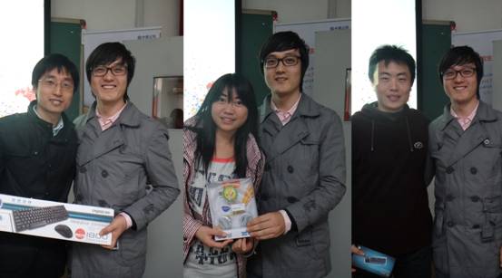中原公司研究生交流論壇的一個(gè)重要環(huán)節,就是最激動(dòng)人心的抽獎環(huán)節,除了每一位到場(chǎng)的老師和同學(xué)都能獲得瘋狂的小鳥(niǎo)一只外,我們還現場(chǎng)抽取了迷你鍵鼠,無(wú)線(xiàn)音樂(lè )耳機和無(wú)線(xiàn)鍵鼠套裝三個(gè)大獎,恭喜如下獲得大獎的三位幸運兒: