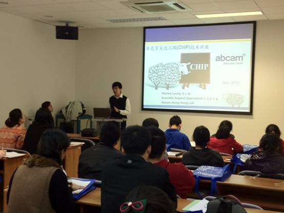 2012年11月7日,中原公司攜手Abcam在清華大學(xué)醫學(xué)館舉辦了一場(chǎng)新產(chǎn)品技術(shù)講座。主題是染色質(zhì)的免疫沉淀(ChIP)技術(shù),由Abcam的科學(xué)技術(shù)專(zhuān)家——梁正晞博士來(lái)為大家講解,現場(chǎng)坐無(wú)缺席。