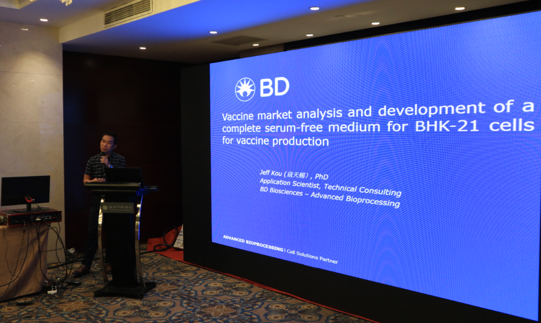 BD公司高級生物工藝部門(mén)高級工程師寇天賜對“疫苗市場(chǎng)分析及BHK無(wú)血清培養基開(kāi)發(fā)”進(jìn)行了主題演講