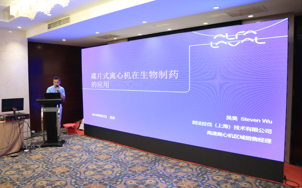 Alfa Laval公司區域銷(xiāo)售經(jīng)理吳昊對“蝶式離心機在生物制藥的應用”進(jìn)行了主題演講