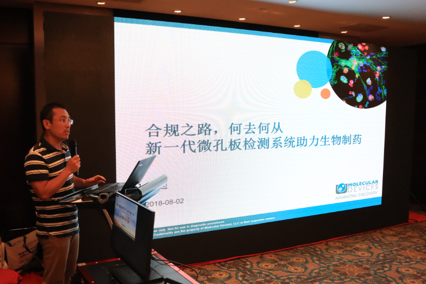 MD公司酶標儀產(chǎn)品線(xiàn)經(jīng)理尹迪對“合規之路,何去何從——新一代微孔板檢測系統助力生物制藥”進(jìn)行了主題演講