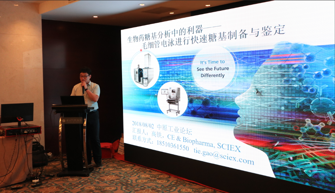 Sciex公司生物制藥部門(mén)技術(shù)專(zhuān)家高鐵對“生物藥糖基分析中的利器——毛細管電泳進(jìn)行快速糖基制備與鑒定”進(jìn)行了主題演講