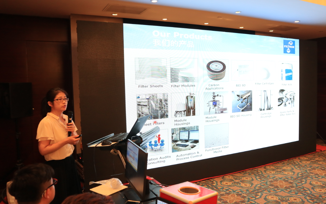 Filtrox公司營(yíng)銷(xiāo)總監何群對“高密度培養液/發(fā)酵液的澄清過(guò)濾”進(jìn)行了主題演講