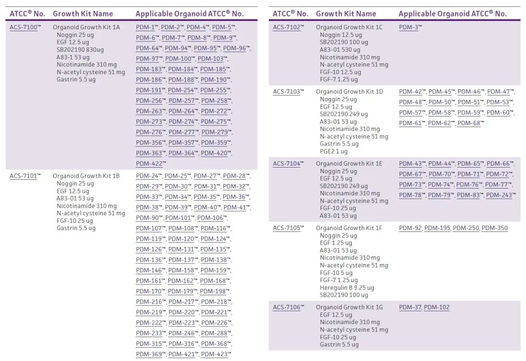ATCC目前有7款類(lèi)器官培養所需的添加劑試劑盒(ACS-7100至ACS-7106),適合于A(yíng)TCC收藏的列表中的類(lèi)器官產(chǎn)品。