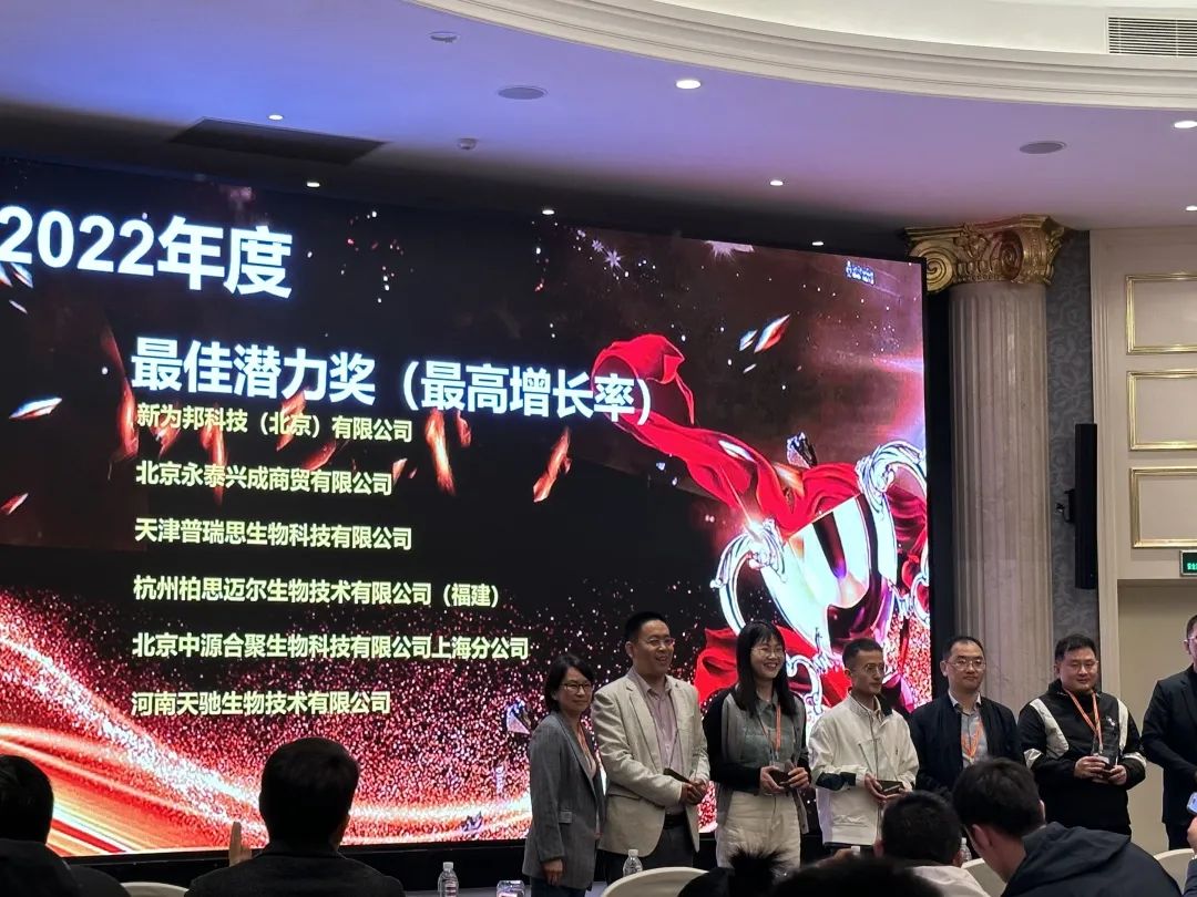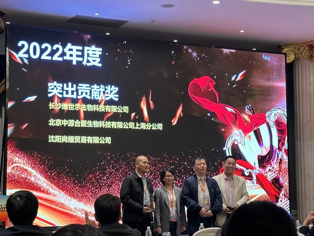 在疫情肆虐的2022年,北京中源合聚生物科技有限公司上海分公司與Abcam團隊緊密協(xié)作,穩定客戶(hù)供應,獲得客戶(hù)一致好評。憑借專(zhuān)業(yè)、高效的市場(chǎng)開(kāi)拓及服務(wù)能力,在本次經(jīng)銷(xiāo)商大會(huì )上,中源上海分公司先后兩次獲得Abcam表彰:2022年度突出貢獻獎以及2022年度最佳潛力獎(最高增長(cháng)率),得到Abcam及在場(chǎng)經(jīng)銷(xiāo)商的高度認可。