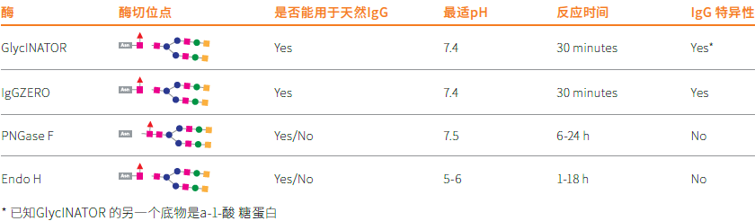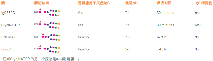 IgGZERO(EndoS)GlycINATOR(EndoS2)快速水解IgG 的Fc 結構域上的N-聚糖。