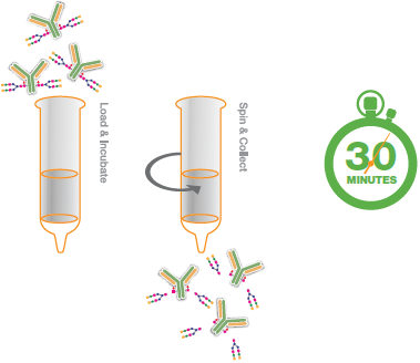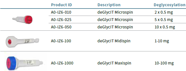 deGlycIT是固定在瓊脂糖上的IgGZERO,可以快速和選擇性去除Fc上的N-聚糖。提供的離心柱預先填充有固定化IgGZERO,可用于少量甚至高達數百mg抗體的去糖基化。