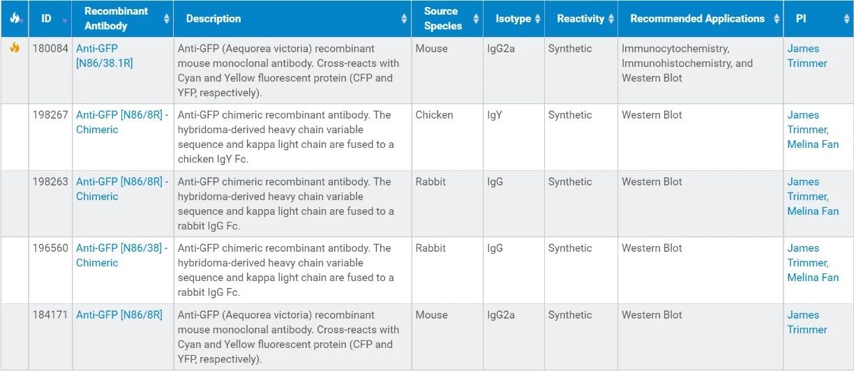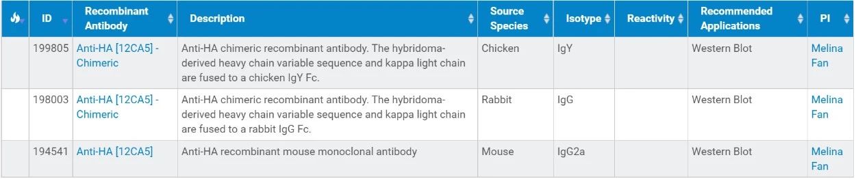 從2022年3月28日開(kāi)始,新的重組抗體信息將可通過(guò)查詢(xún)Addgene網(wǎng)站上的網(wǎng)頁(yè)信息來(lái)獲得,如需訂購,請聯(lián)系我們。
